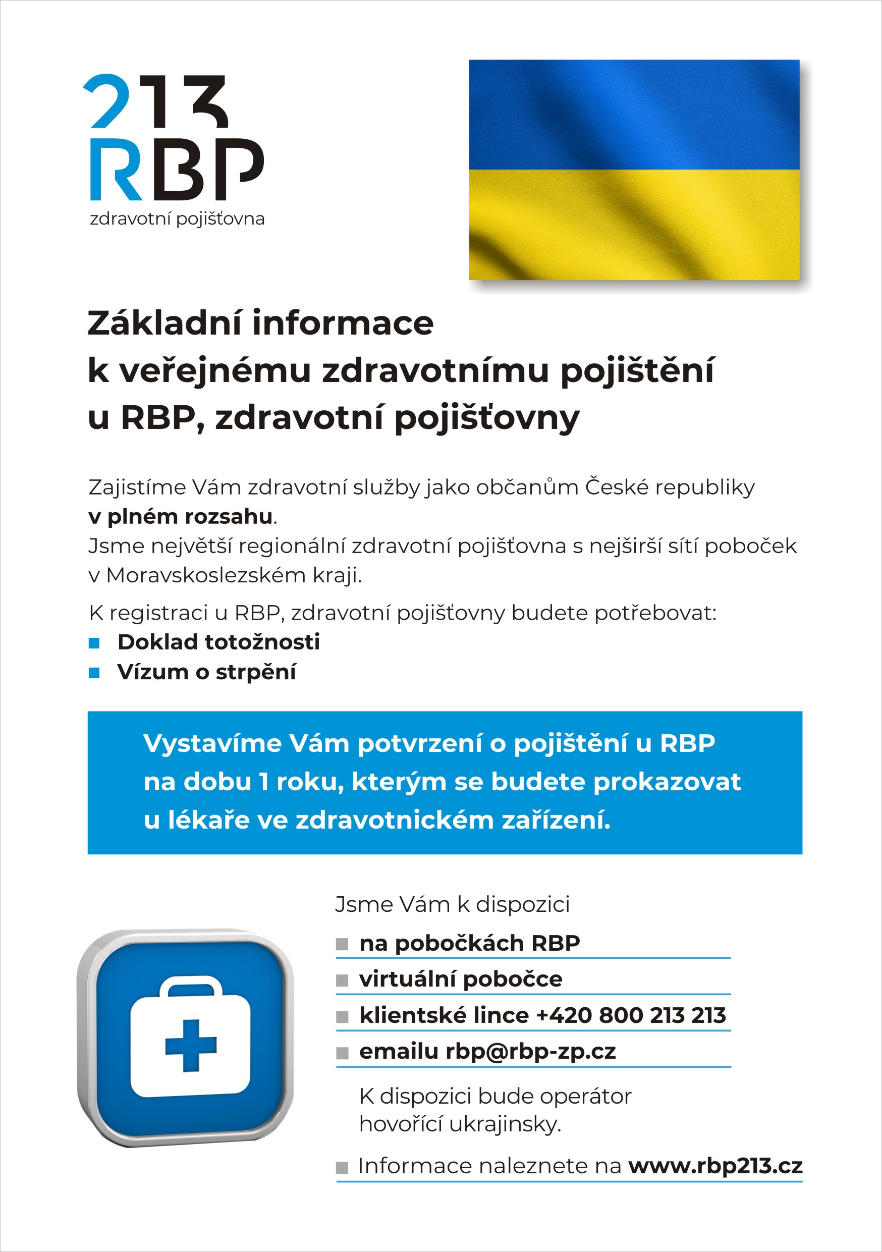 Občané Ukrajiny, kteří prchají před válkou ve své zemi a v České republice obdrží vízum za účelem strpění pobytu, se mohou od 1. března 2022 zaregistrovat do systému zdravotního pojištění i u zdravotní pojišťovny RBP.