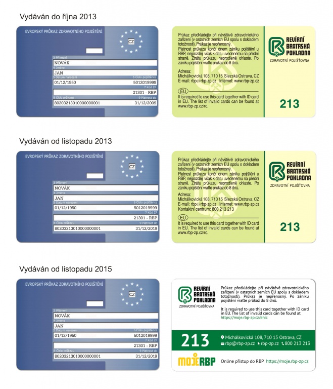 Pojišťovna má v současné době tři druhy průkazu pojištěnce. EHIC, průkaz pro pojištěnce pobývajících na území ČR dočasně a průkaz bílý - dočasný.