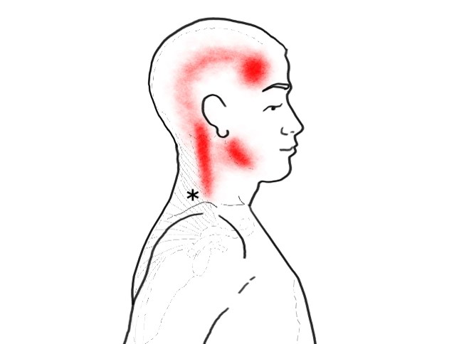Horní část trapézového svalu je přetížena, pokud jsou ramena trvale vytažena "k uším", např. při telefonování, také je to sval výrazně reagující na stres. Projevuje se jako tupá tenzní bolest šíje a hlavy.