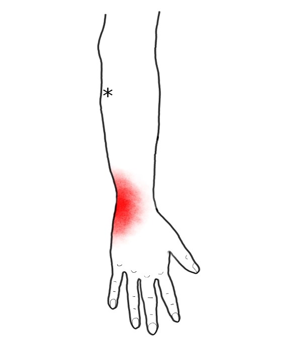 Přetěžují se při činnostech, kde je nutný opakovaný stisk, kroutivé pohyby rukou, ale také při psaní na klávesnici a práci s myší. Bolest je v oblasti zápěstí z malíkové, hřbetní strany.