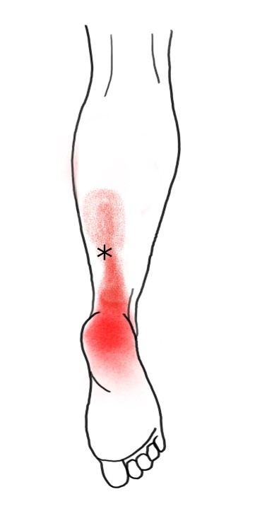 Postavte se čelem ke stěně a opřete se o ni rukama. Neprotahovanou dolní končetinu pokrčte v kyčli a v koleni, zanožte protahovanou dolní končetinu a opřete ji o celé chodidlo – špička směřuje ke stěně. Pak pokrčte koleno této dolní končetiny. Protažení svalu zvětšíte přibližováním trupu ke stěně (patu držte stále na podložce). Aktivace svalu dosáhnete nadzvednutím paty od podložky.